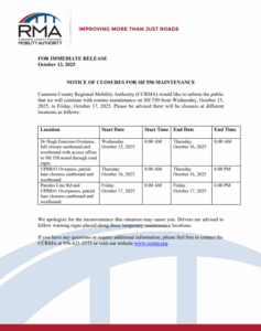 Featured October 15, 2025 Cameron County RMA Notice of Closures on SH 550 El Periodico USA Staff February 19, 2024