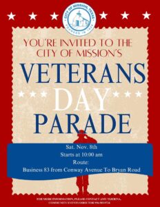 The City of Mission encourages all residents to attend and participate in these events as the community comes together to celebrate and thank our veterans for their dedication to freedom and service.