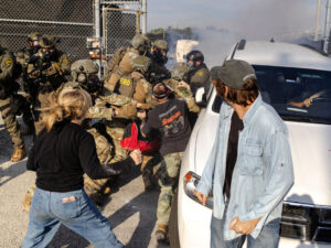 The reported use of tear gas appears to contradict a temporary restraining order issued earlier this year by a federal court. The order explicitly prohibits federal agents from using chemical agents, rubber bullets, or flash bangs without first issuing two clear warnings. It also restricts the use of such weapons to cases where there is an immediate threat of harm.